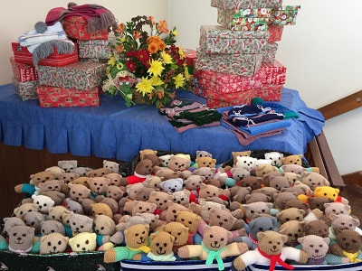 | Comfort teddies made for children in hospital. Boxes filled with knitted gifts and other treats for the Samaritan's Purse Christmas Appeal. | |